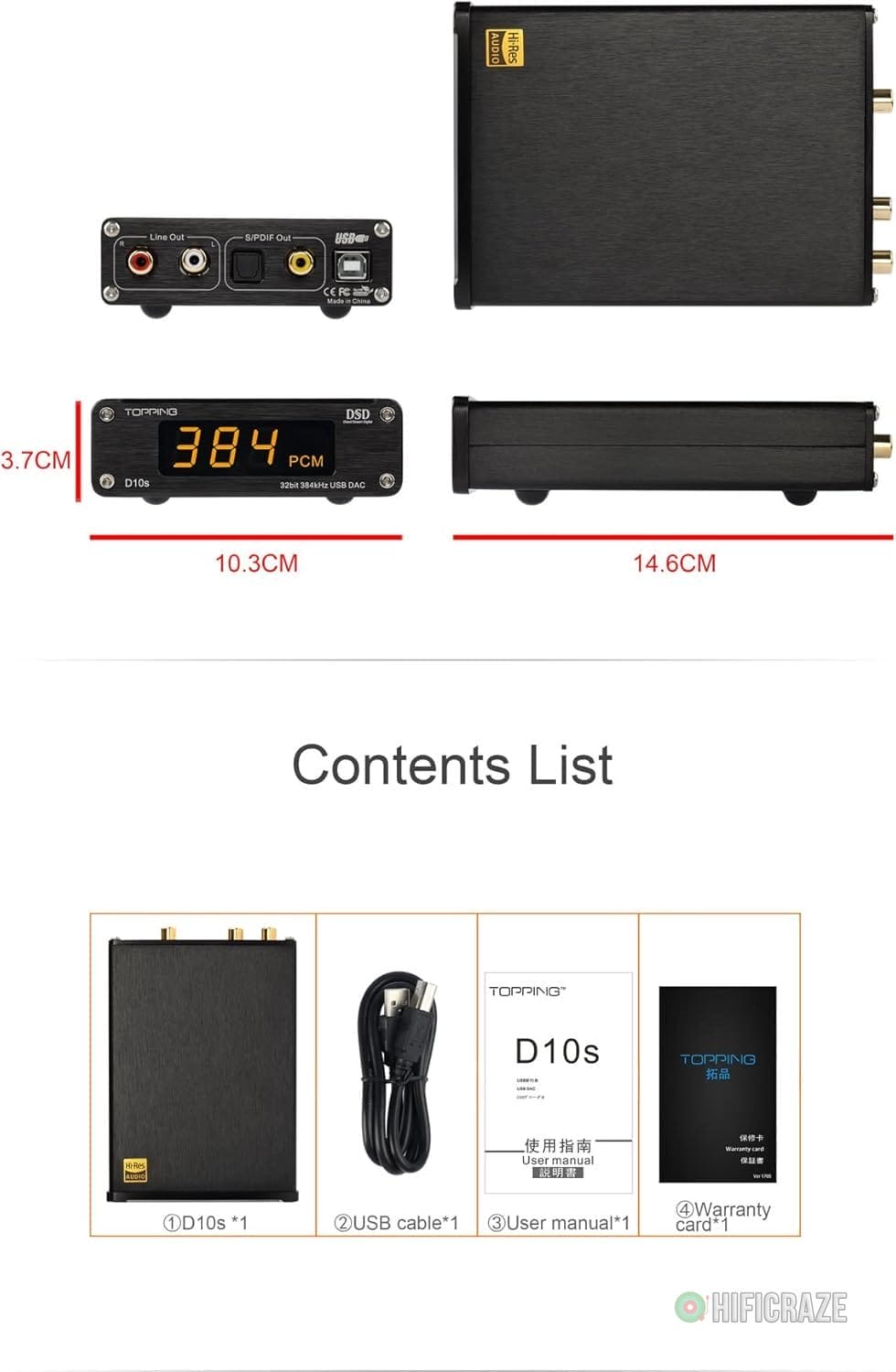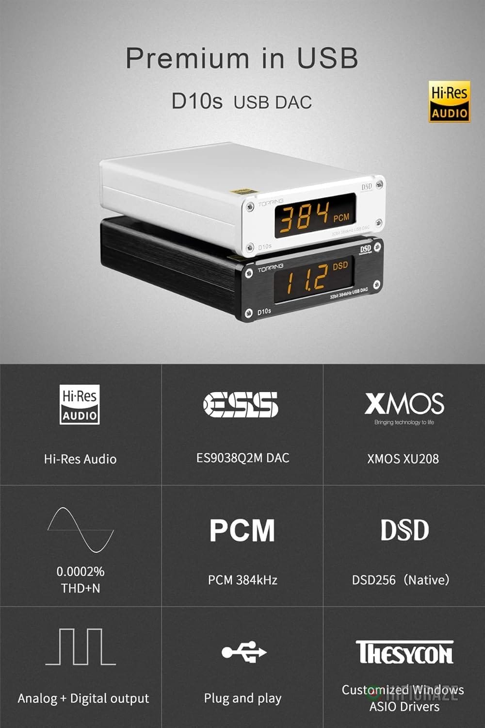 Specification: Topping D10s Mini USB DAC CSS XMOS XU208 ES9038Q2M OPA2134 Audio Amplifier Decoder Black