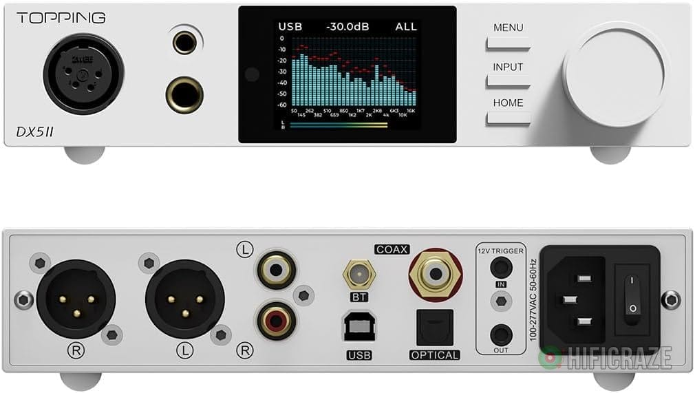 Specification: TOPPING DX5 II Hi-Res DAC & Headphone Amp Combo – Dual ES9039Q2M, X-Hybrid Amp, 10-Band PEQ, LDAC Bluetooth 5.1, 4.4mm Balanced & 6.35mm Headphone Output, Preamp Mode, 12V Trigger (White)