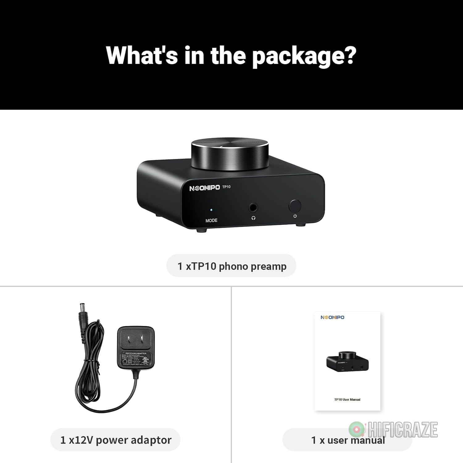 - 1 x NEOHIPO TP10 phono preamp