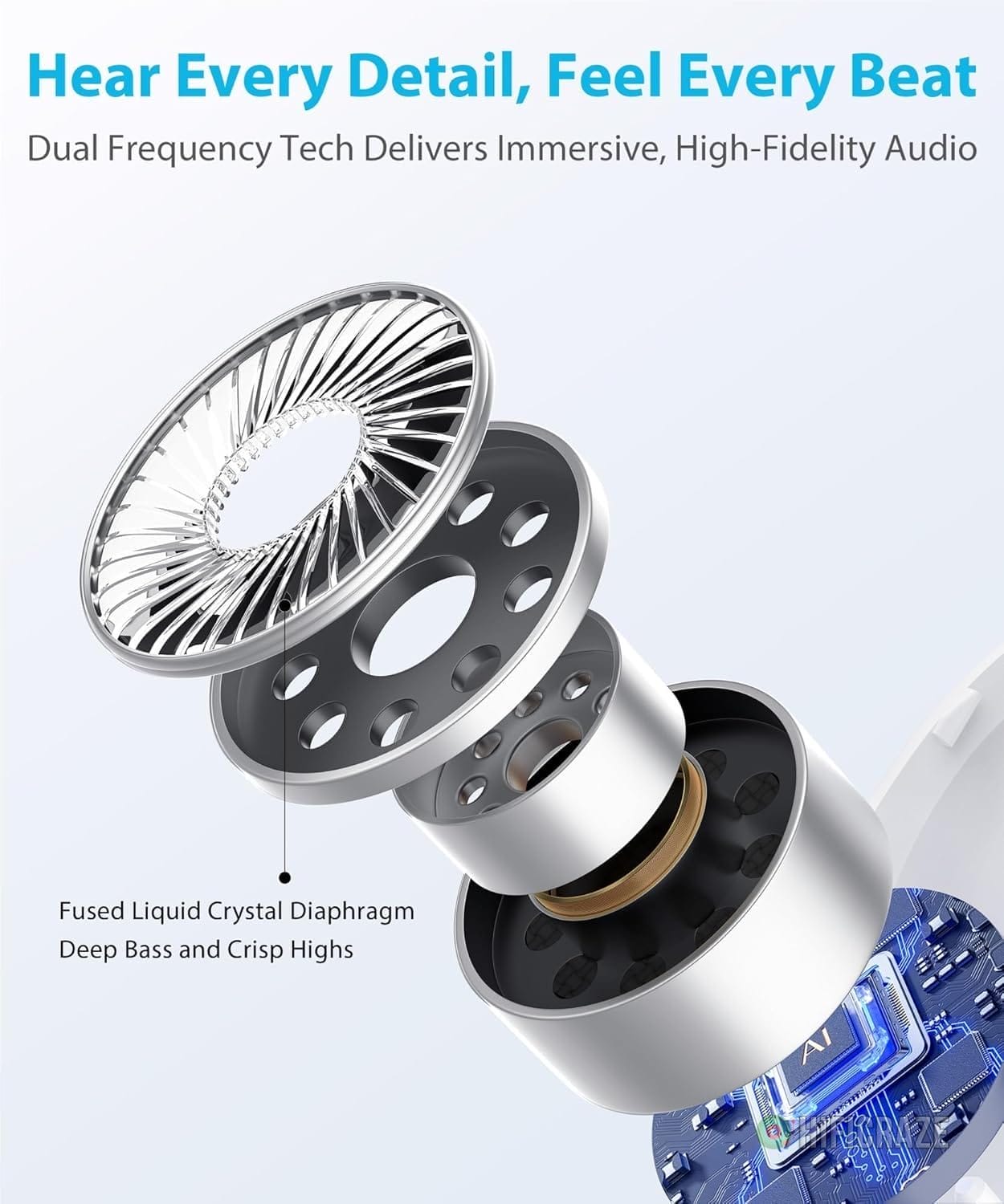 Equipped with 16.3mm dynamic drivers, these earbuds deliver a realistic stereo experience. The nuanced sound quality captures every detail in music, providing flawless reproduction of instruments and vocals. Additionally, they ensure crystal-clear communication for calls, creating a face-to-face communication feel. With precise sound capture, you can enjoy uninterrupted conversations without sacrificing audio quality.