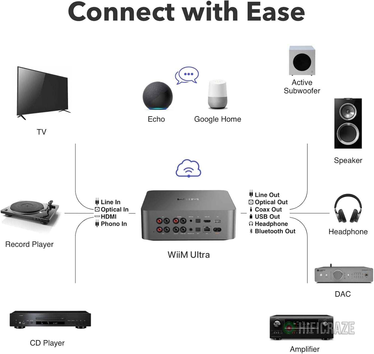 Multiroom Audio Capability: The WiiM Ultra enables easy management of your music streaming across various rooms using existing Amazon Echo and Google Home devices, all controlled via the user-friendly WiiM Home App.