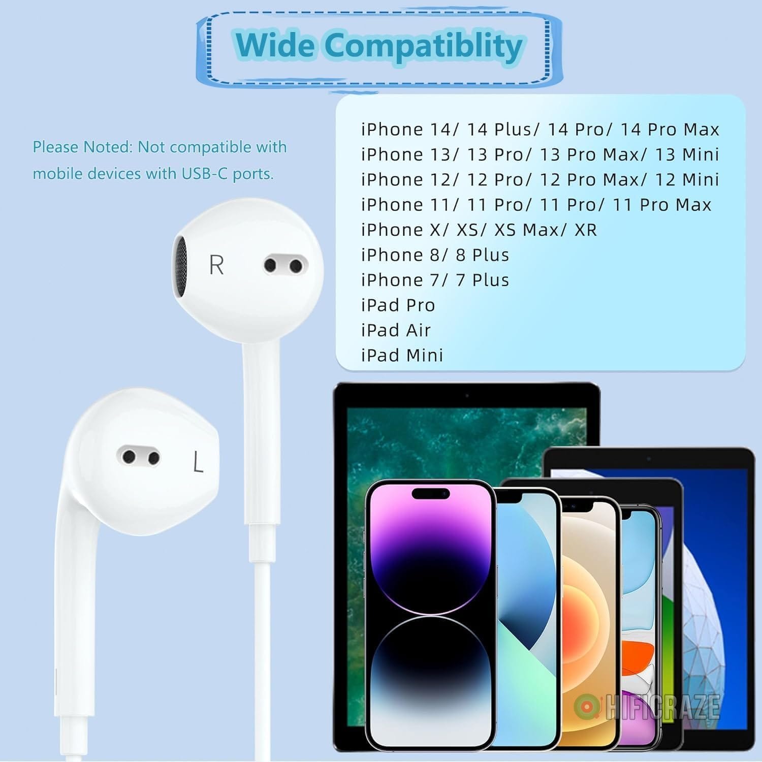 Specification: Wired Earphones for iPhone Earbuds with Lightning Connector Plug&Play Built-in Microphone & Remote Control Headsets Compatible with iPhone 14/13/12/11/XR/XS/X/8/SE/Pro/Pro Max Ear Buds Corded Headsets